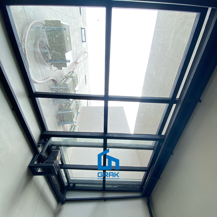 Kanopi Otomatis dirancang untuk mendukung kebutuhan hunian modern dengan sistem kanopi sliding otomatis yang mengutamakan kenyamanan, keamanan, dan tampilan estetis. Menggunakan material kaca berkualitas yang dipadukan dengan tulangan hollow 5×10, struktur kanopi ini dibangun secara kokoh untuk menunjang penggunaan jangka panjang sekaligus memberikan kesan elegan pada area fasad rumah.